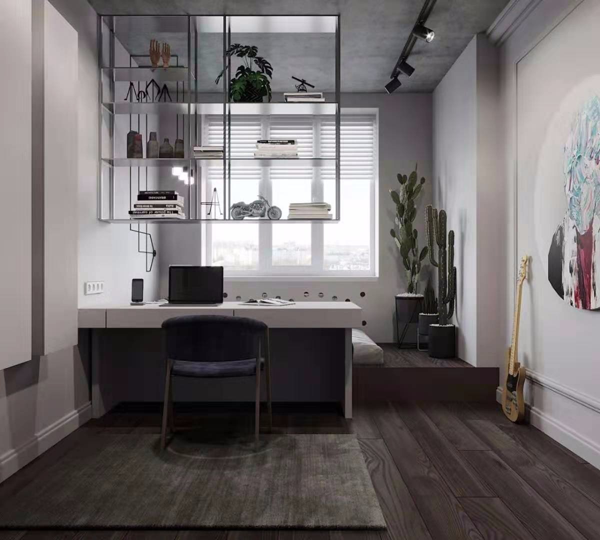 書桌與書架的搭配將整個(gè)客廳的設(shè)計(jì)變得靈活