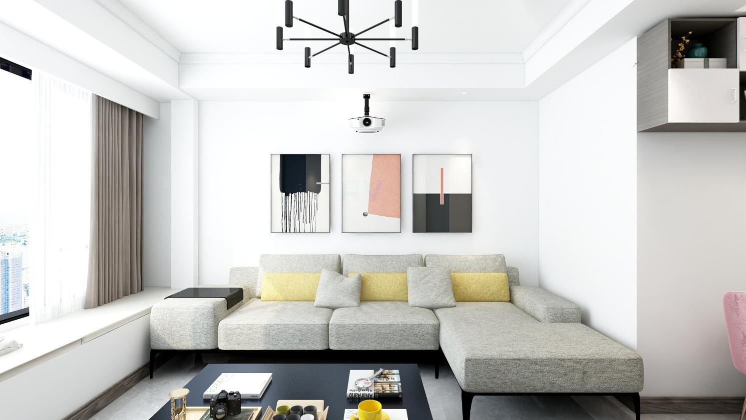 沙發背景墻鑲現代裝飾掛畫,如同將生活中瑣碎閃爍的美好收攏進來,只待不日將它取下,細細品味。