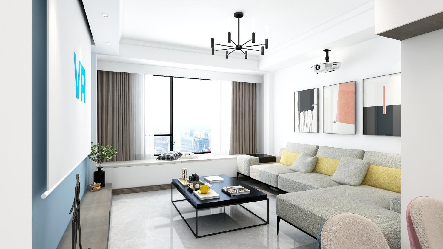電視背景墻以少即是多的態度為室內塑造更多的想象空間,大面積留白的思路結合跳脫的藍色色點綴呼應,回歸到電視墻本質把視覺更多留在電視。