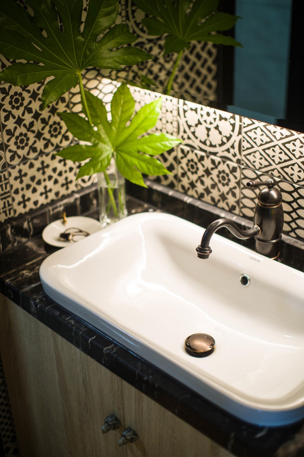 衛生間在花團簇擁下,卸去一天工作的疲憊,也是對美好事物的心靈對話。