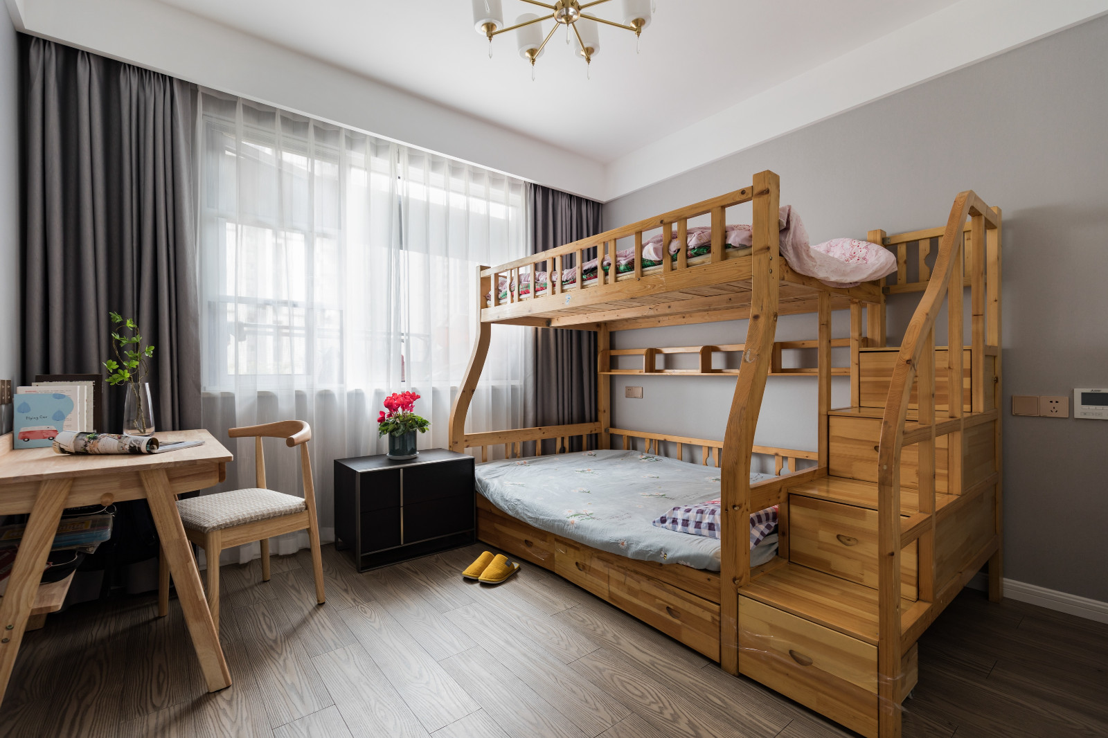 小飄窗被打造成簡單的休閑區,彌補了房間空間的不足,有一遇之地可視聽人間煙雨,可收攬冬日陽光的暖意。